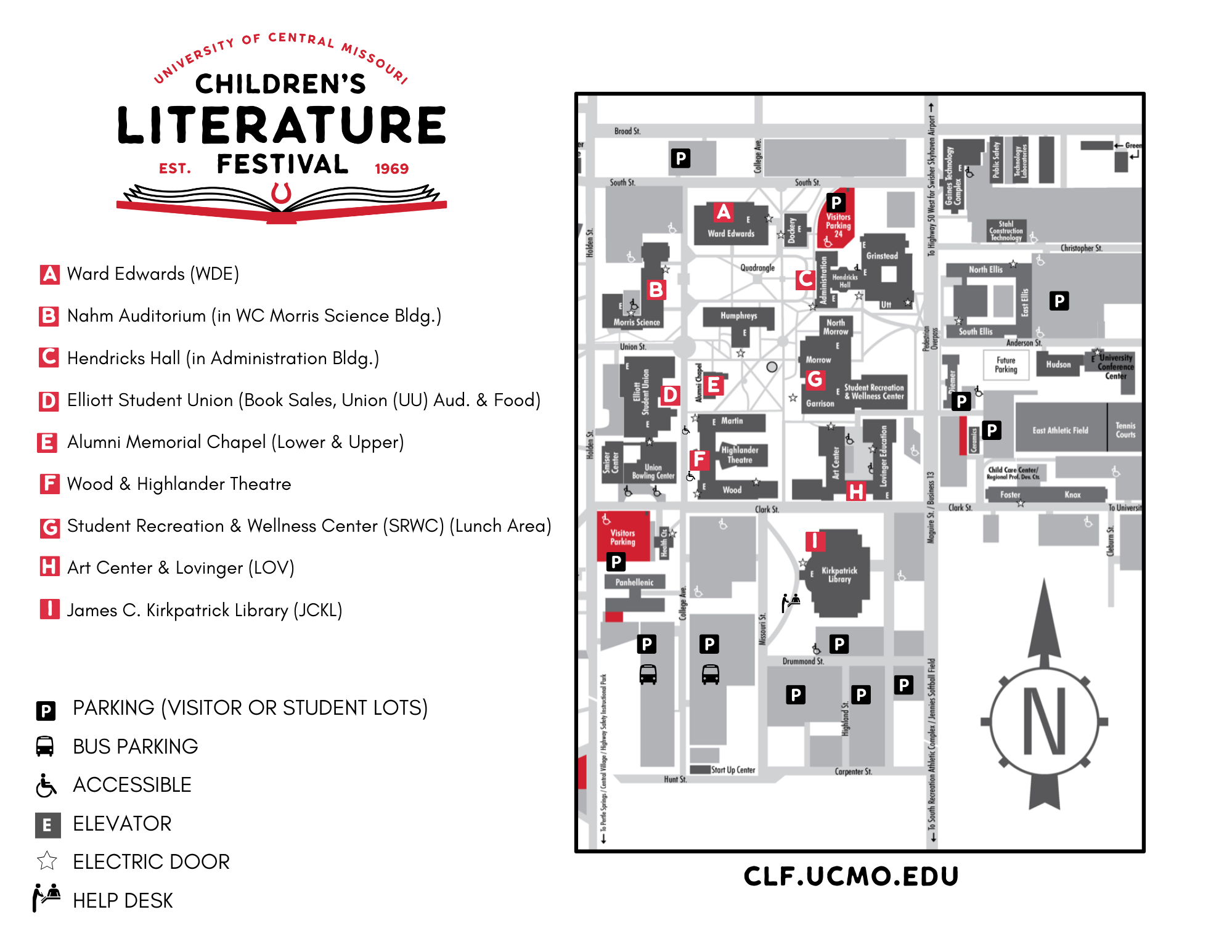 The Children's Literature Festival map has now been updated for 2026 and provides information about the campus venue locations, parking and accessibility.
